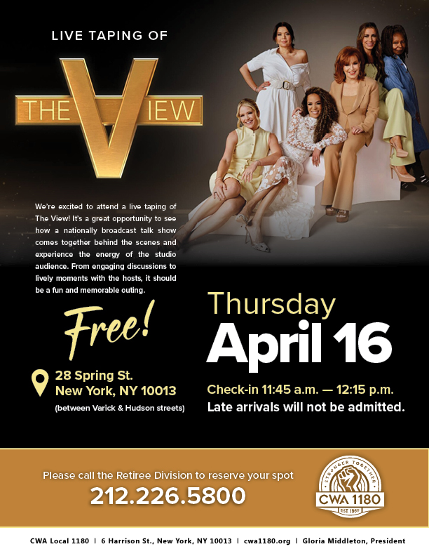 Call the Retiree Division to reserve your spot today: 212.226.5800